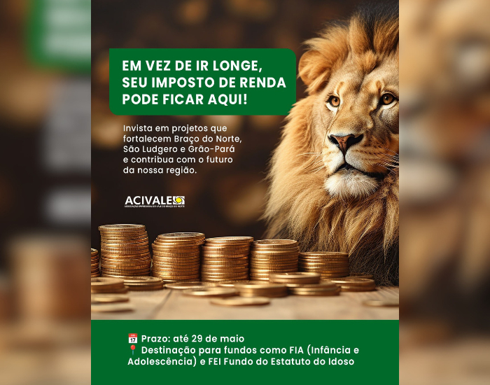 Você sabia que pode transformar parte do seu Imposto de Renda (IR) em cuidado, oportunidades e qualidade de vida para pessoas da nossa região? Ao fazer a sua declaração, é possível destinar uma parte do imposto para projetos sociais que atendem crianças, adolescentes e idosos de Braço do Norte, São Ludgero e Grão-Pará — e o melhor: sem pagar nada a mais por isso. É uma forma simples de fazer o bem e garantir que recursos importantes fiquem aqui, beneficiando diretamente a nossa comunidade.