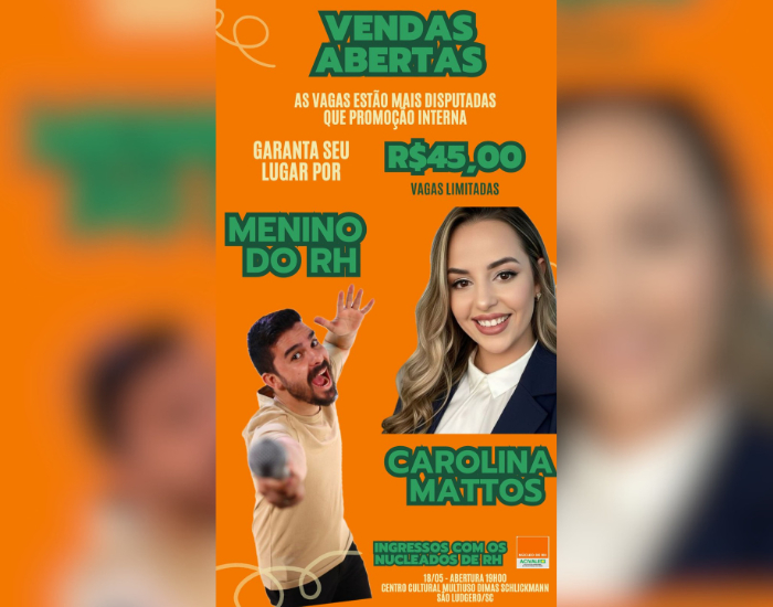 O stand-up com o Menino do RH trará reflexões e histórias sobre o mundo corporativo. O humorista Michael Rodrigues se apresentará pela primeira vez na região. Ele tem se destacado no cenário nacional por suas apresentações que misturam humor e conteúdo relacionado à área de Recursos Humanos.