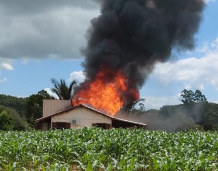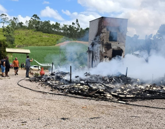 Os Bombeiros Voluntários foram acionados junto com o caminhão pipa do município para conter o fogo. Após a extinção das chamas, o local foi totalmente destruído.