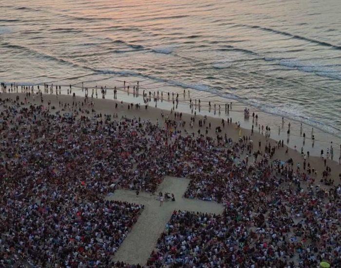Foto: Divulgação Milhares de pessoas trocaram o descanso de sábado pelo espetáculo do nascer do sol na Praia do Campeche, em Florianópolis, para participar de um massivo encontro de fé e comunhão na manhã deste dia 21.