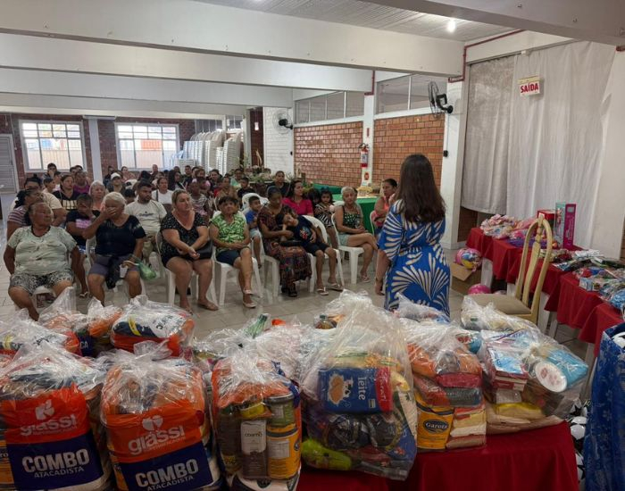 Durante a ação, foram distribuídas cestas básicas, frangos, brinquedos e bombons, garantindo não apenas alimento para a ceia, mas também alegria para as crianças