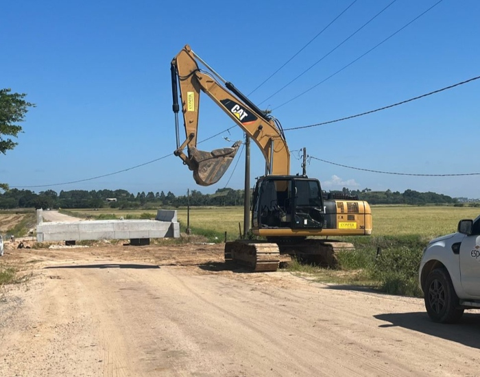 A obra de construção da ponte na Rodovia Municipal Pedro Rosa Lemos, a conhecida Estrada da Jabuticabeira, está sendo retomada na tarde desta terça-feira, dia 9, em Jaguaruna. A previsão divulgada pela prefeitura era de que os trabalhos seriam retomados na última quinta-feira, dia 4, pela empresa responsável, porém, as equipes chegaram ao local nesta terça.