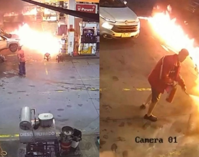 Frentista utilizou extintor e ajudou a extinguir as chamas provocadas por um homem que foi preso em flagrante
