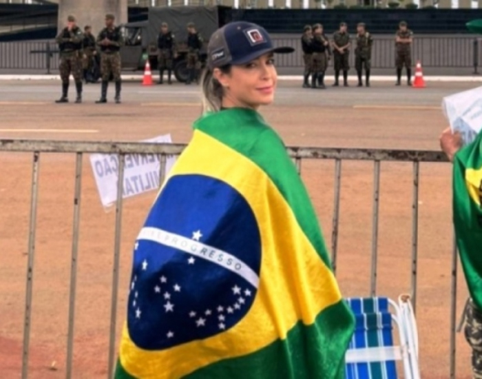 Na oportunidade, a Polícia afirmou: “No aparelho foram encontrados 128 arquivos de fotos e/ou vídeos criados pelo usuário em 08/01/2023, nos quais a usuária aparece enrolada na bandeira nacional e com rosto coberto por máscara camuflada em cenas de invasão e depredação dos prédios dos Poderes da República.”