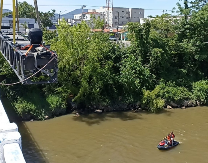 O fechamento da ponte Heriberto Hülse, no Centro de Tubarão, nesta segunda-feira, dia 25, foi necessário para a instalação dos equipamentos que possibilitarão o espetáculo das águas dançantes no rio durante o período natalino do comércio.