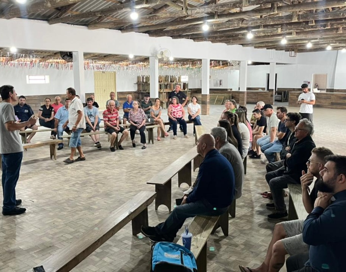 Divulgação/Folha Regional Mais de 70 moradores das comunidades de Lageado, São Luiz e Sanga do Lageado se reuniram no último sábado, dia 11, no salão comunitário da igreja local para discutir o interesse de uma empresa privada em instalar uma atividade de mineração próximo ao bairro São Cristóvão, em área que abrange os municípios de Tubarão e Treze de Maio.