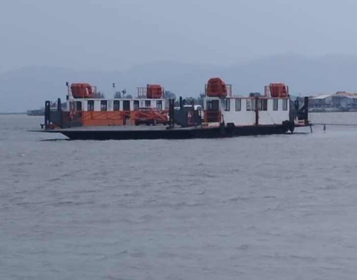 A balsa que faz a travessia no Canal da Barra, em Laguna, encalhou mais uma vez em um banco de areia nesta terça-feira, dia 1º.