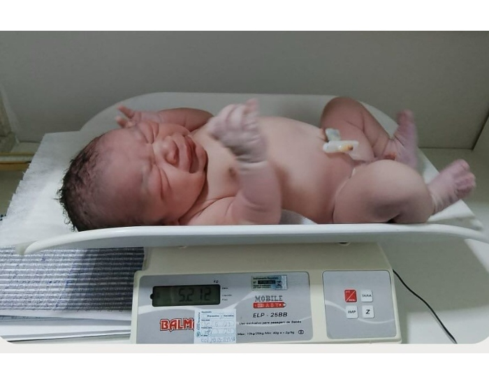 O casal Aycha Flausino e Isau Breno Santos Ferreira, de Braço do Norte, foi surpreendido com o nascimento de seu super bebê. Levy Flausino Ferreira nasceu com 51 cm e pesando 5.212 kg, sendo o primeiro filho do casal.