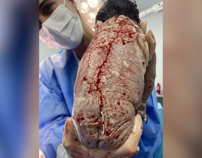 A cena curiosa foi registrada logo após o parto e divulgada pela ginecologista e obstetra Rafaela Frota, que compartilhou a imagem em seu perfil