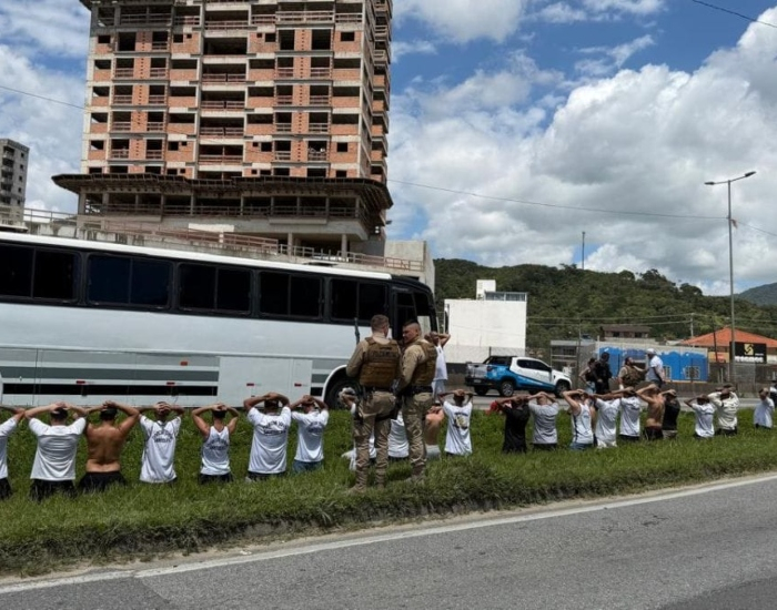 Redes Sociais/Divulgação/Folha Regional Uma briga generalizada entre torcedores do Santos e do Internacional bloqueou a BR-101 em Itapema, no Litoral Norte de Santa Catarina, na manhã desta quinta-feira, dia 4.