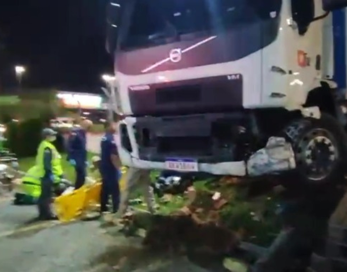 Ele trafegava sentido norte quando perdeu o controle, saiu da pista e invadiu a marginal, atingindo o motociclista. O jovem de 21 anos foi lançado ao chão, caindo próximo ao caminhão, que só parou após invadir o pátio de uma empresa localizada na beira da rodovia.