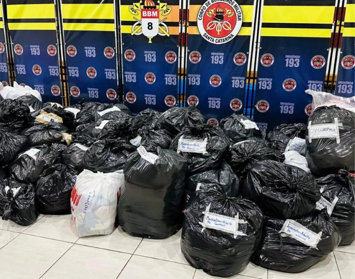 Foto: Kélen Bardini/PMT As peças de roupa angariadas durante a Campanha do Agasalho 2025, realizada pelo Corpo de Bombeiros Militar de Tubarão, em parceria com a prefeitura, foram entregues nesta terça-feira, 24.