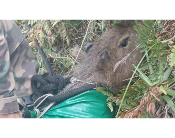Divulgação/Folha Regional Uma capivara que estava presa há cerca de quatro dias em um penhasco de uma trilha de Florianópolis foi resgatada de helicóptero na tarde desta quinta-feira, dia 17.