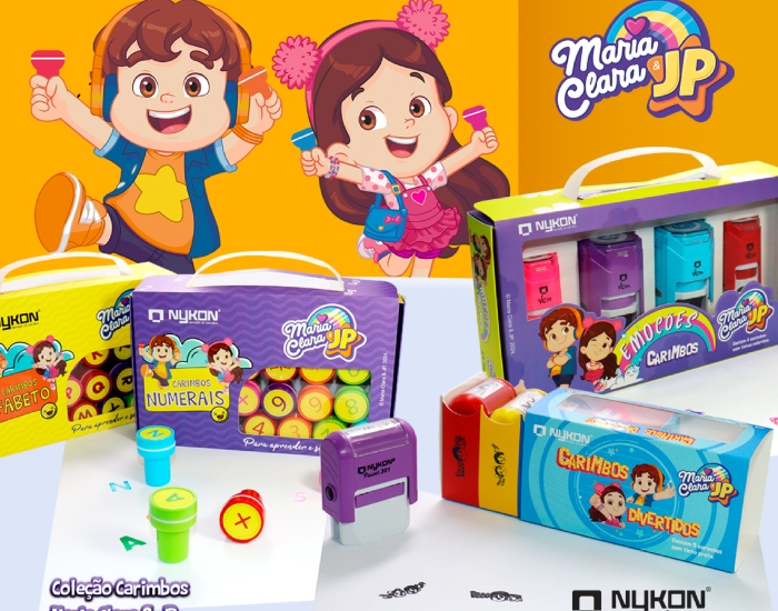 Através da experiência enriquecedora tanto para o desenvolvimento intelectual quanto para a expressão artística dos pequenos, a Carimbos Nykon® junto com a Maria Clara & JP lançam uma incrível coleção de carimbos, são eles: