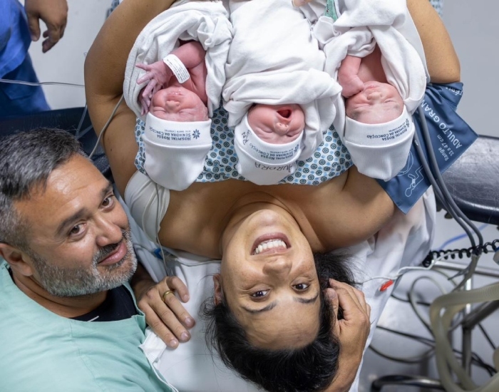 A paciente, com gravidez de risco, vinha sendo acompanhada pela equipe multiprofissional no ambulatório de Alto Risco da instituição desde o início da gestação, recebendo todos os cuidados necessários para um parto seguro. “A equipe é incrível. Durante todo o meu processo fui muito bem acolhida e tive uma gestação, apesar de trigêmeos, tranquila”, relata Graziela. “Foi um parto emocionante, chorei quando tive elas nos meus braços. Será um momento para toda vida”.