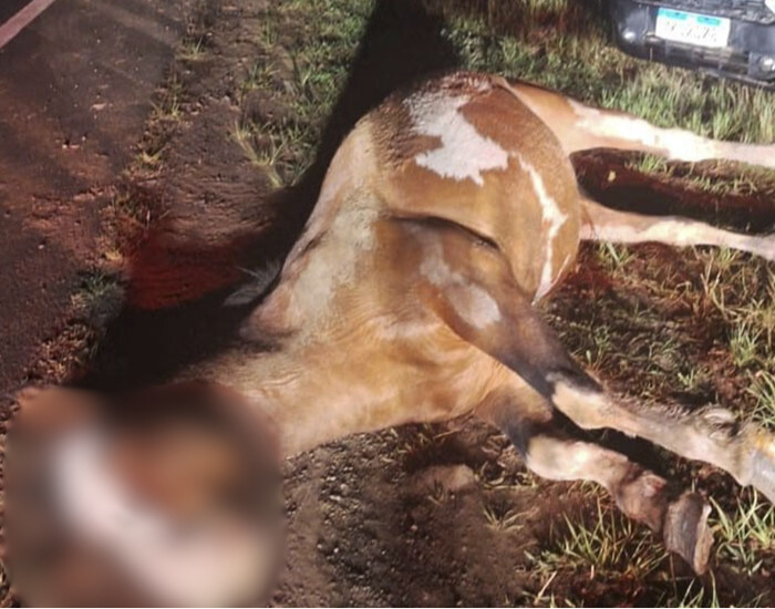 Segundo relatos, o animal atravessou a frente do condutor de um Fiat Punto, que não conseguiu desviar e acabou colidindo.
