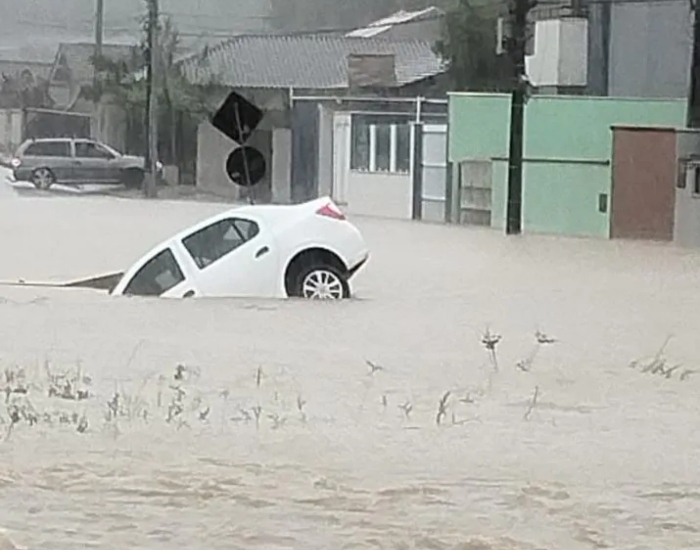 Há possibilidade de acumulados pontuais entre 100 mm e 150 mm, especialmente nas regiões próximas à divisa com o Paraná, onde o risco de desastres naturais é mais alto.