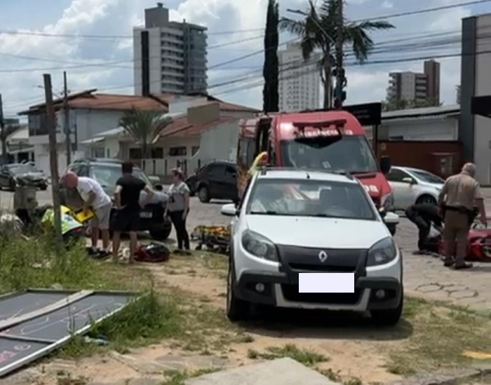 Divulgação/Folha Regional Mais um acidente de trânsito foi registrado na Rua Wenceslau Braz, no bairro Recife, em Tubarão, nesta quarta-feira, dia 5. Uma colisão entre uma motocicleta e um automóvel deixou duas mulheres feridas.