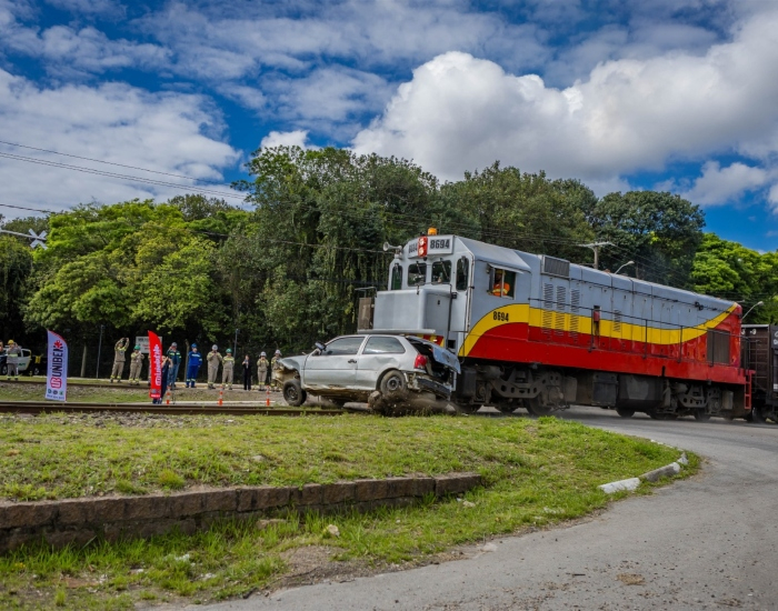 O treinamento simulou uma colisão entre uma locomotiva e um veículo de passeio, com vítimas aparentes, e teve como objetivo principal alertar motoristas, ciclistas e pedestres sobre os riscos de imprudência ao cruzar a linha férrea, além de testar, na prática, a eficiência do atendimento integrado em situações de emergência.