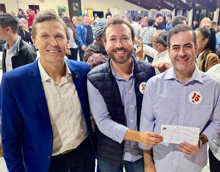 Pavei entre Weber e Chiodini - Foto: Divulgação/Folha Regional O Movimento Democrático Brasileiro (MDB) de Tubarão tem novo presidente. Rodrigo Pavei, advogado e chefe de gabinete do deputado estadual Volnei Weber, aceitou o convite do presidente estadual do partido, deputado federal Carlos Chiodini, e da executiva estadual para assumir a presidência do partido na cidade com o apoio de lideranças históricas do MDB tubaronense.