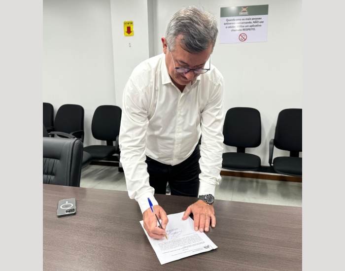 Divulgação/Folha Regional O vice-prefeito de Criciúma Ricardo Fabris, foi empossado como prefeito interino na tarde desta terça-feira, dia 3, após a prisão preventiva do prefeito Clésio Salvaro. O ato de posse ocorreu no Paço Municipal Marcos Rovaris.
