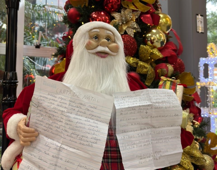 Outras duas cartas também foram deixadas na cooperativa: a de José Keverson, de 7 anos, que pediu uma piscina redonda. “Sempre quis ter uma piscina para aproveitar o verão com a minha família”, escreveu o pequeno. “Papai Noel, queria ganhar um bebê reborn menino, é meu sonho”, pediu Eloah Maidana Nunes, de 7 anos.