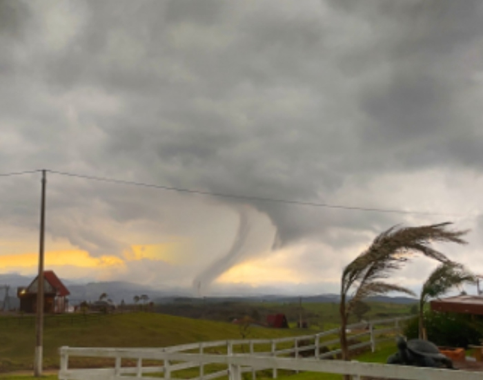 Divulgação/Folha Regional A Defesa Civil de Santa Catarina confirmou nesta terça-feira, dia 23, a formação de uma nuvem de funil em Alfredo Wagner, na Grande Florianópolis, na manhã do último domingo, dia 21.