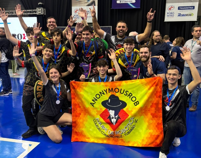 Eles integram a equipe de robótica Anonymous Robots, do Colégio Coração Feliz, que conquistou três medalhas de ouro na etapa nacional da World Robot Olympiad (WRO), realizada em Brusque.
