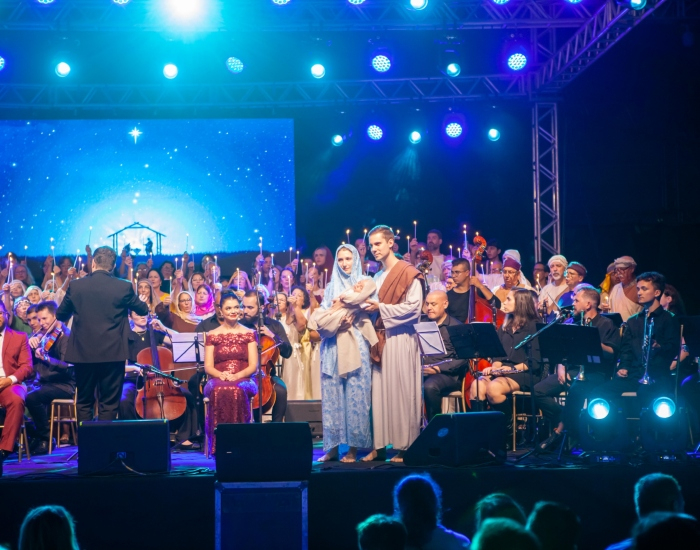 A partir das 19h30, o espaço se transforma em cenário para o musical “Verdadeira Luz”, que reúne uma orquestra com cerca de 50 músicos, um coral com mais de 150 vozes e um grupo teatral que dará vida às profecias do Primeiro Testamento até o nascimento de Jesus em Belém. O repertório integra passagens do Evangelho com momentos de teatro e dança, criando uma experiência completa de arte e fé.