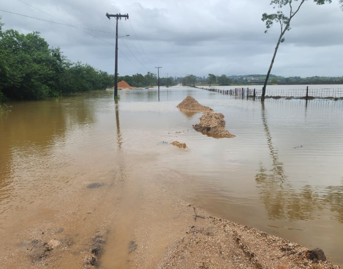 O bloqueio ocorre no trecho entre Morro da Fumaça e a localidade de Rio Vargedo, em Treze de Maio, em razão do transbordamento do Rio Urussanga.