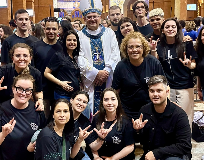 “Tivemos a oportunidade de visitar o santuário e conhecer pessoas surdas de todo o Brasil. Foi um encontro muito bonito. E temos a graça de ter o bispo, que é o referencial da CNBB aqui conosco”, destaca Jaqueline.