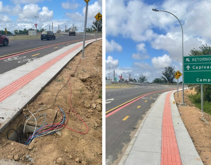 Os fios elétricos instalados por meio de dutos subterrâneos entre a rede elétrica no final da Avenida Marcolino Martins Cabral até a cabeceira da ponte Stélio Cascaes Boabaid foram furtados na noite desta terça-feira, dia 29, possivelmente entre as 20h de ontem e a madrugada desta quarta, dia 30. A instalação havia sido feita nos dias 28 e 29, ontem, e ainda não havia sido ligada à rede da Avenida.