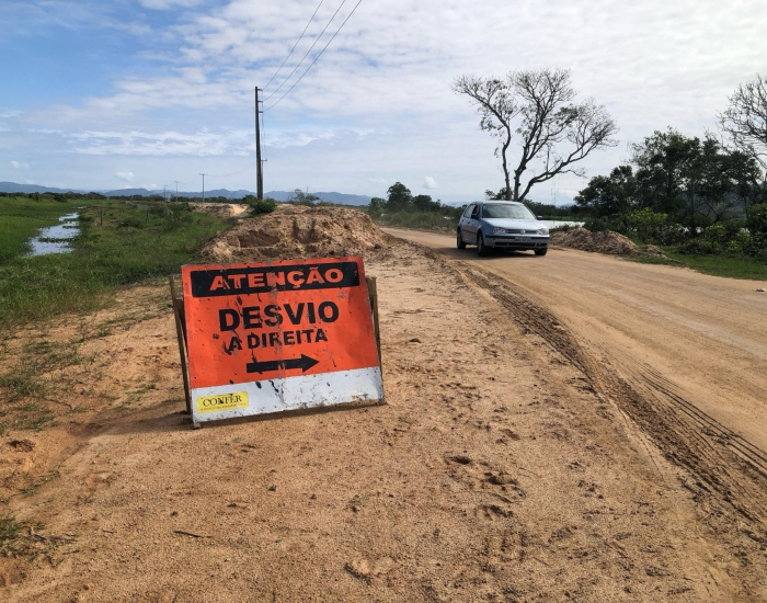 Willian Reis/Folha Regional Com previsão de entrega para o fim deste ano anunciada pelo governo do Estado, as obras de pavimentação da Rodovia Aggeu Medeiros, que liga Tubarão a Laguna, foram novamente paralisadas.