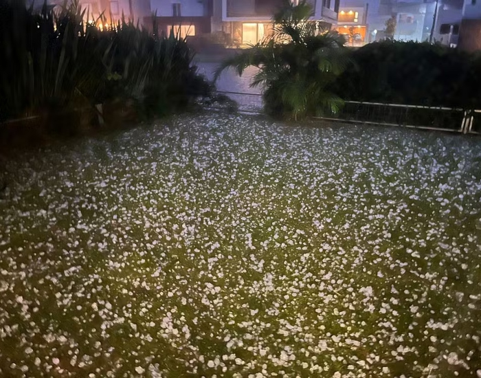 A cidade de Pelotas registrou chuva de granizo em áreas localizadas em meio à inundação consequente das fortes chuvas de maio no estado do Rio Grande do Sul.