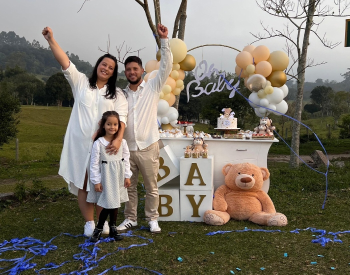 Em um espaço no Sertão da Estiva, em Pescaria Brava, a família se reuniu. Cada um compartilhou seus palpites: o casal, tios e avós afirmavam que seria um menino, outra parte da família achava que seria menina, até que chegou o grande momento.