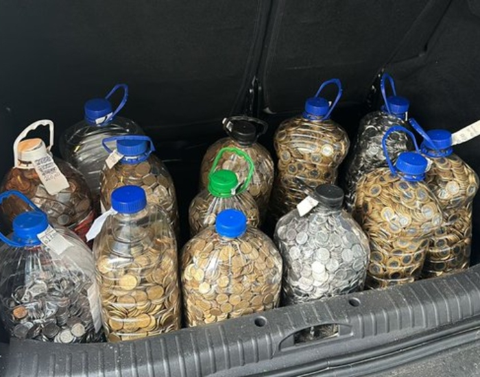 O cliente levou 13 galões de água cheios de dinheiro à loja