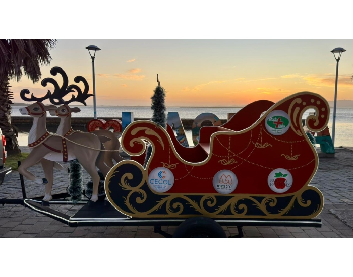 Jorge Anastasiadis/Divulgação/Folha Regional O clima de Natal tomou conta do Centro Histórico de Laguna com a passagem de um trenó decorado nesta quinta-feira, dia 23.