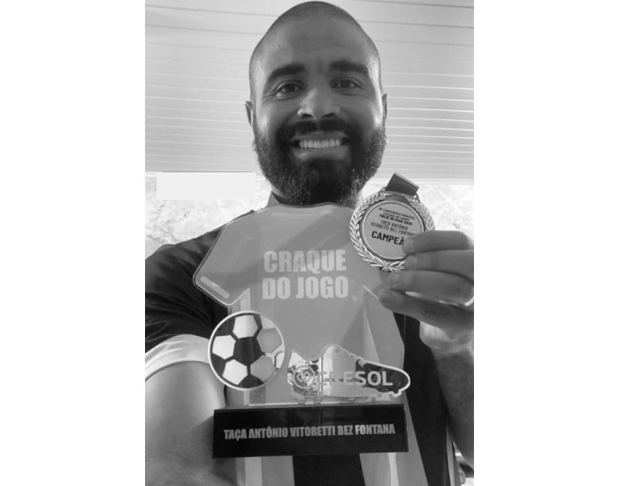 Divulgação/Folha Regional O jogador de futebol amador Guilherme Leacina da Silva, o Gui Praia, faleceu na madrugada desta segunda-feira, dia 1º, no hospital São José, em Criciúma, aos 34 anos. Ele era morador do Balneário Rincão e conhecido na região por sua atuação nos campeonatos de futebol amador.