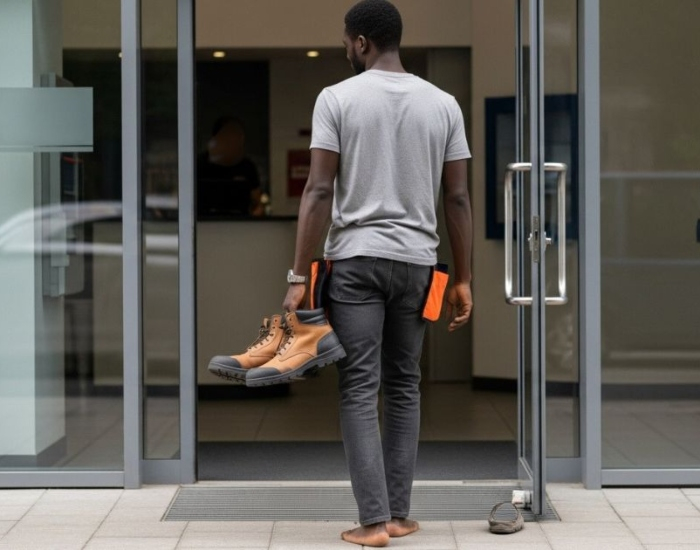 Imagem ilustrativa/Divulgação/Folha Regional A Caixa Econômica Federal (CEF) foi condenada a pagar R$ 50 mil de indenização por danos morais a um servente de pedreiro, que é negro e foi obrigado a retirar os calçados – botinas com ponteira metálica usadas como equipamento de proteção individual (EPI) na construção civil – para entrar em uma agência bancária no município de Torres (RS).