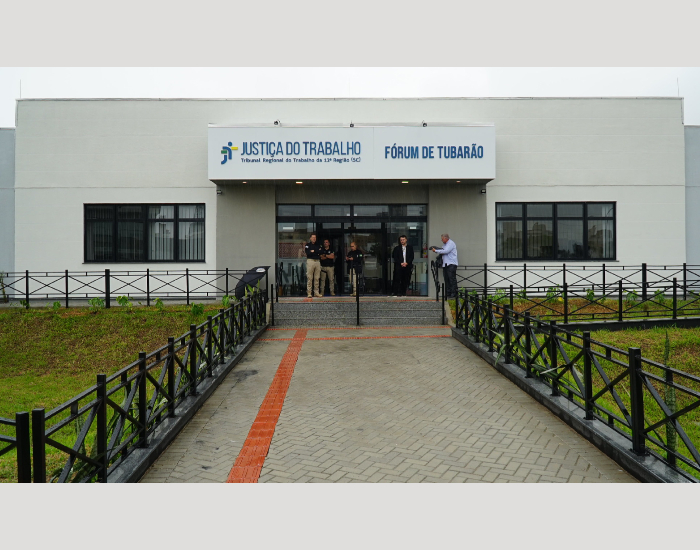 Divulgação/Folha Regional A Justiça do Trabalho inaugurou nesta terça-feira, dia 18, a nova sede do Fórum Trabalhista de Tubarão, localizada na Rua São Luiz, esquina com a Rua Aracaju, nº 771, no bairro Vila Moema. O prédio substitui as antigas instalações de 1970 e passa a oferecer um espaço moderno, com estacionamento para usuários internos e externos.