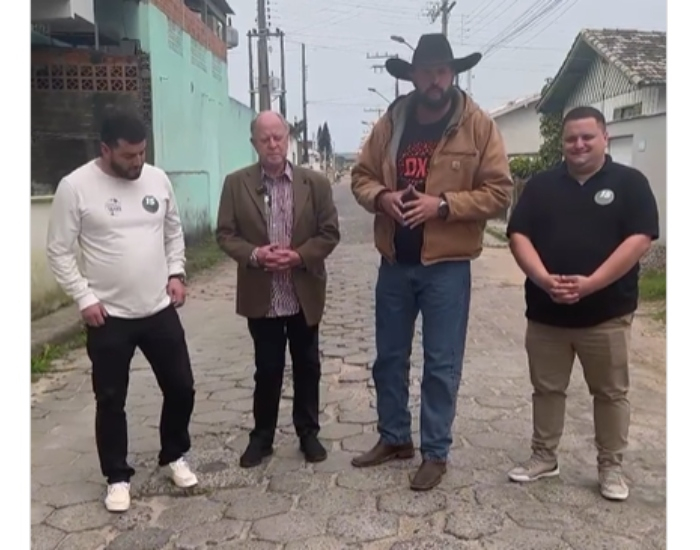 Reprodução/Folha Regional Uma medida liminar da Justiça Eleitoral de Laguna desta sexta-feira, dia 13, determina a retirada de uma publicação das redes sociais em que o candidato a vereador Rhoomening Souza Rodrigues (MDB) e o candidato a prefeito Mauro Vargas Candemil (MDB) com seu candidato a vice Nilson Coelho Filho (PP) aparecem ao lado do deputado federal Zé Trovão (PL) prometendo recursos para a pavimentação asfáltica da Rua Giocondo Tasso, no bairro de Cabeçuda.
