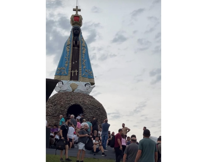 Divulgação/Folha Regional Desde as primeiras horas da manhã deste domingo, dia 12, feriado nacional de Nossa Senhora Aparecida, centenas de fiéis se deslocam em direção à colina onde fica a imagem da padreira do Brasil, com 13 metros de altura, em Treze de Maio.