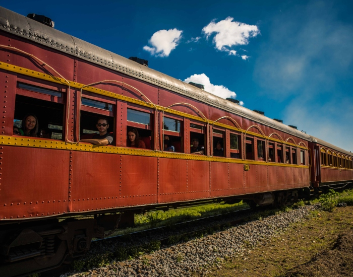 O passeio inclui visita ao acervo de locomotivas a vapor, o maior conjunto ferroviário da América Latina, bilhete ida e volta na Maria Fumaça e comissária exclusiva.
