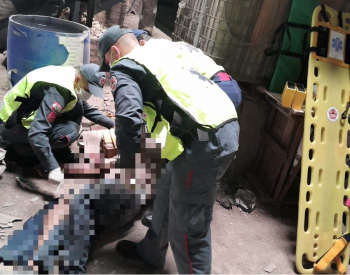 No local, a vítima foi encontrada deitada de lado, apresentando um corte na cabeça, contusão com escoriação na região da coluna cervical e uma possível fratura na perna direita.