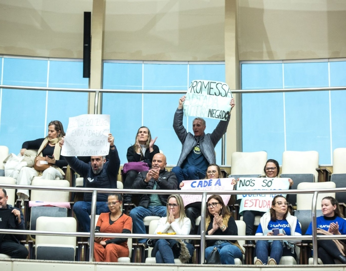 “Os alunos da Unisul ficaram sem bolsas, mesmo estando aptos, e famílias ficaram endividadas por propagandas de garantia de bolsas. Foi muito importante todo o esforço feito pelos deputados para que esses alunos não ficassem desamparados. O que a gente pede não é nada demais, e sim que eles não saíssem prejudicados”, afirmou a secretária geral do DCE Unisul Norte, Maria Clara Santos Garcia.