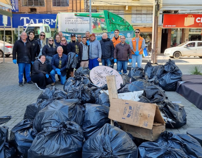 Os participantes do mutirão de limpeza realizado nas duas margens do Rio Tubarão, na manhã desta quarta-feira, dia 14, recolheram 2.200 quilos de lixo e resíduos diversos.