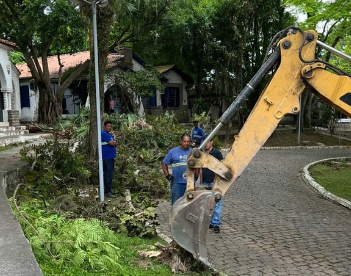 Até o momento, foram retiradas cerca de 15 toneladas, o que equivale a cinco caminhões, com as podas das árvores, e outros três com os entulhos existentes no local, em um volume que chegou a 10 toneladas.