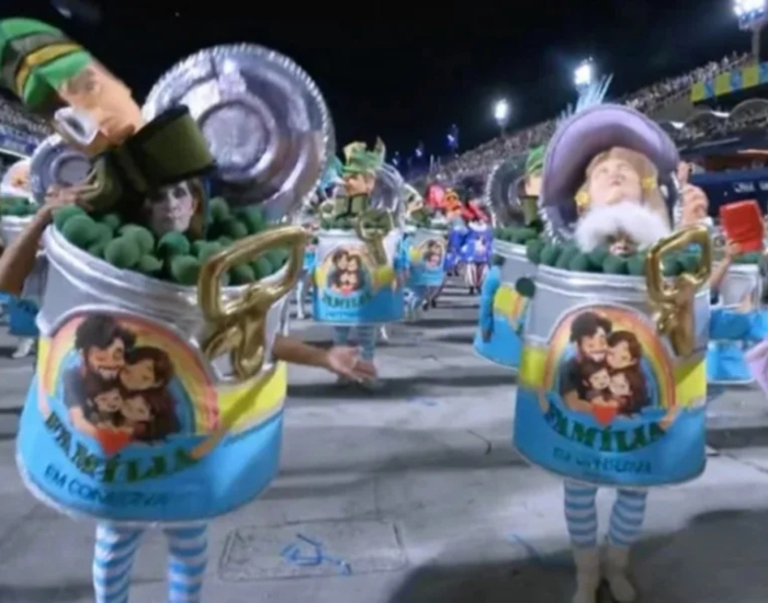 “A fantasia traz uma lata de conserva, com uma defesa da dita família tradicional, formada exclusivamente por um homem, uma mulher e os filhos. Na cabeça dos componentes, há uma variação de elementos para enumerar os grupos que levantam a bandeira do neoconservadorismo. São eles: os representantes do agronegócio, uma mulher de classe alta, os defensores da Ditadura Militar e os grupos religiosos evangélicos”.