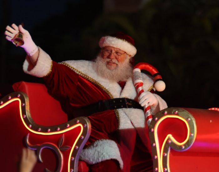 Foto: Divulgação Imbituba viveu uma noite memorável nesta segunda-feira, 8, feriado de Nossa Senhora Imaculada Conceição. A aguardada chegada do Papai Noel transformou o Centro da cidade em um grande cenário natalino, reunindo centenas de famílias e dando início oficial às festividades de fim de ano.