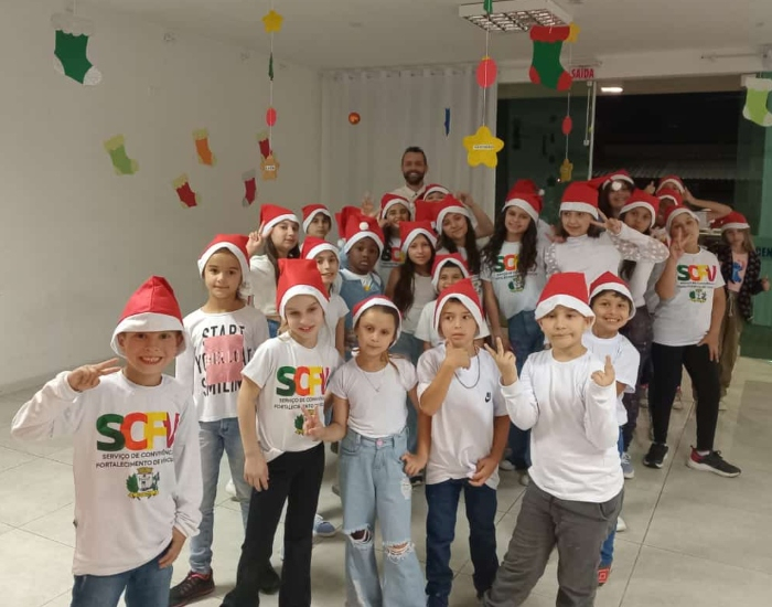 No mesmo dia, o CRAS foi palco de uma celebração mágica e cheia de solidariedade. A Associação de Amigos da Imigração, acompanhada do Papai Noel, realizou uma visita especial, distribuindo presentes e balas para as crianças atendidas pelo Serviço de Convivência e Fortalecimento de Vínculos.